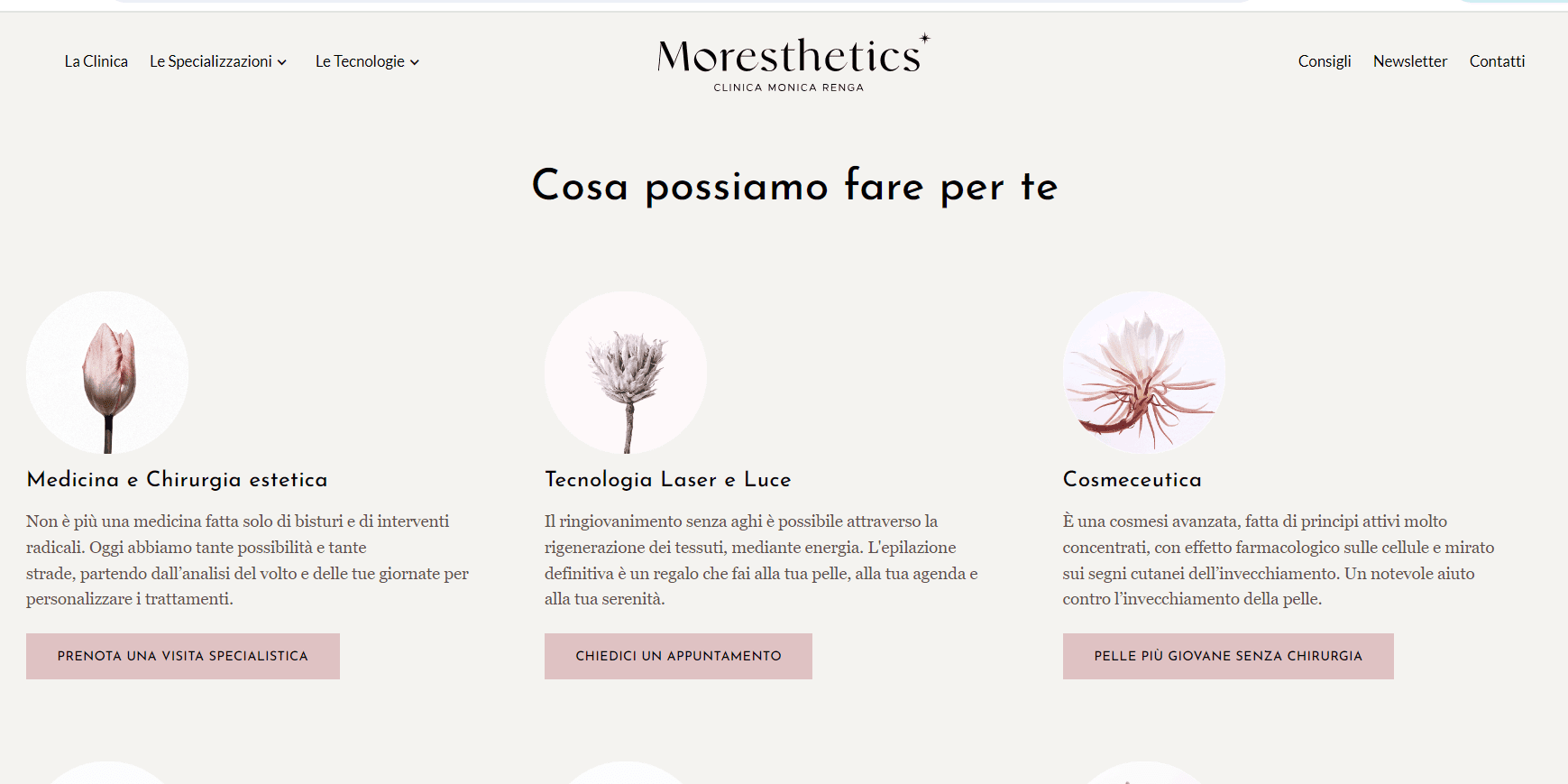 The project for Doctor Renga began with the choice of the name of her new Clinic and the design of the logo, and then continued with the creation of the brand book and the setting up of the digital channels. At the same time we coordinated the creation of the new website, taking care of every detail relating to the browsing experience: SEO research, copywriting, architecture, visual design and image selection. The results can be seen in a strong brand identity, with an authoritative and feminine style, a perfectly curated, intuitive and engaging website, and a considerable increase in patients on the diary.